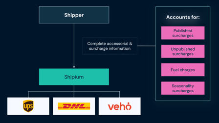 Transparency & AuditingCarrier APIs don’t always expose full breakdowns of how rates are calculated. Shipium’s rating engine provides a transparent cost breakdown, helping finance teams reconcile invoices and flag unexpected cost variations.